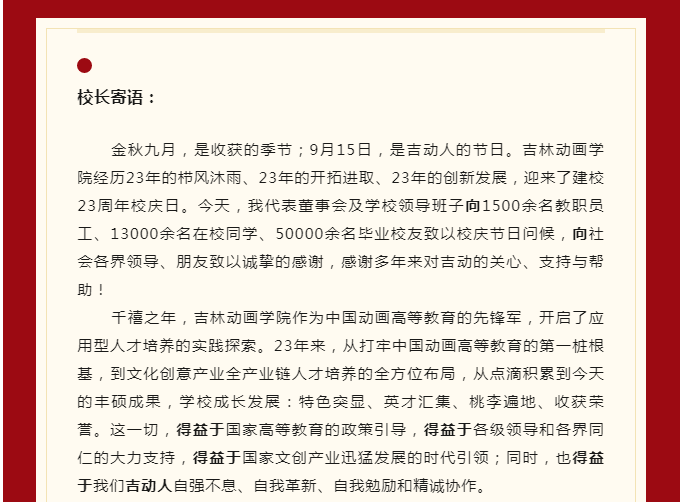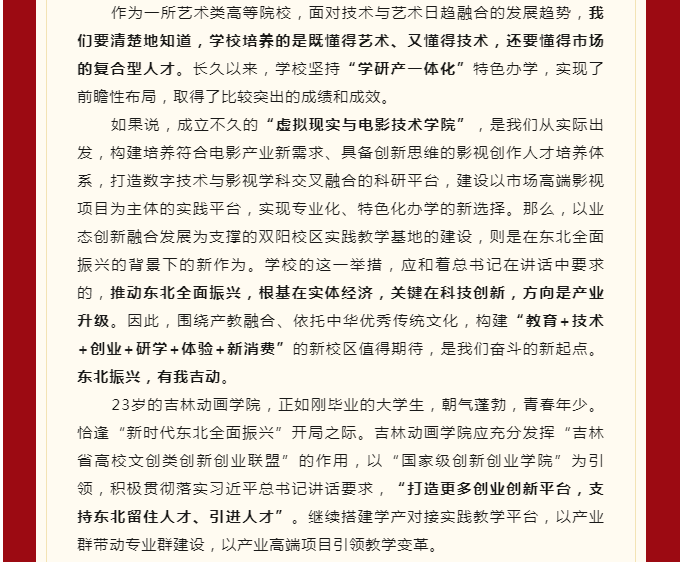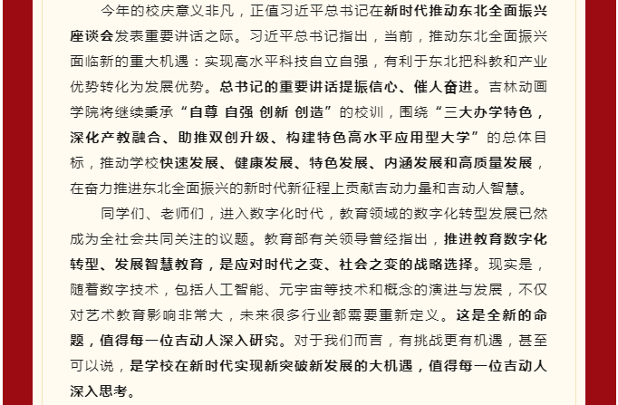 【JAI·新】东北振兴 有我吉动 吉林动画学院23周年校庆日校长寄语