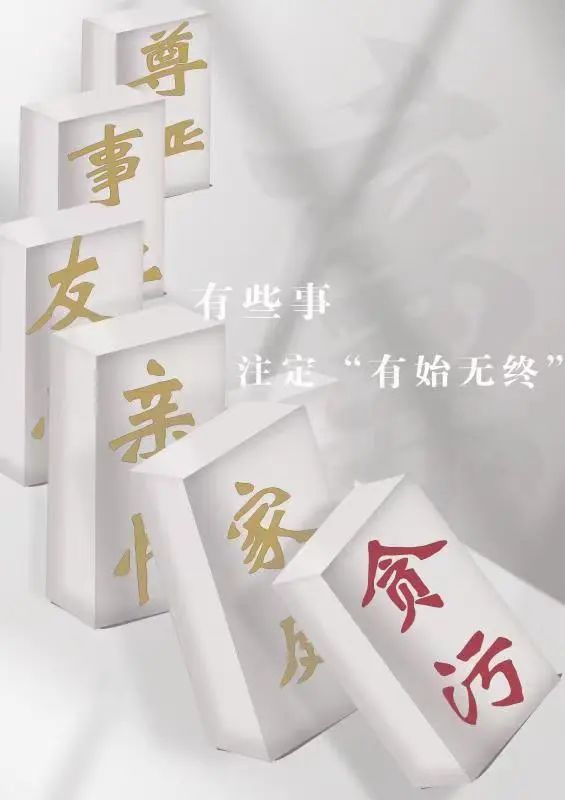 该作品借用多米诺骨牌的连带效应的灵感,关联贪腐所衍生的连带危害,点名抵制贪腐的主题。以贪腐为源,环环相扣,呈压倒之势先后扑倒家庭、事业以及自身的尊严,用“廉”字淡化水印打底,突出反腐倡廉的重要性。