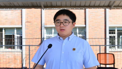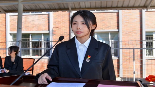动画艺术学院2020级邵秋璇作为在校生代表发言,她说,大学是我们重新塑造自己,芳华绽放的舞台,也是我们破茧成蝶、鱼跃龙门的终极试炼,更是人生道路抉择的分岔口!未来,我们将明确目标、科学规划;坚持学习,脚踏实地;勇于探索、积极实践!